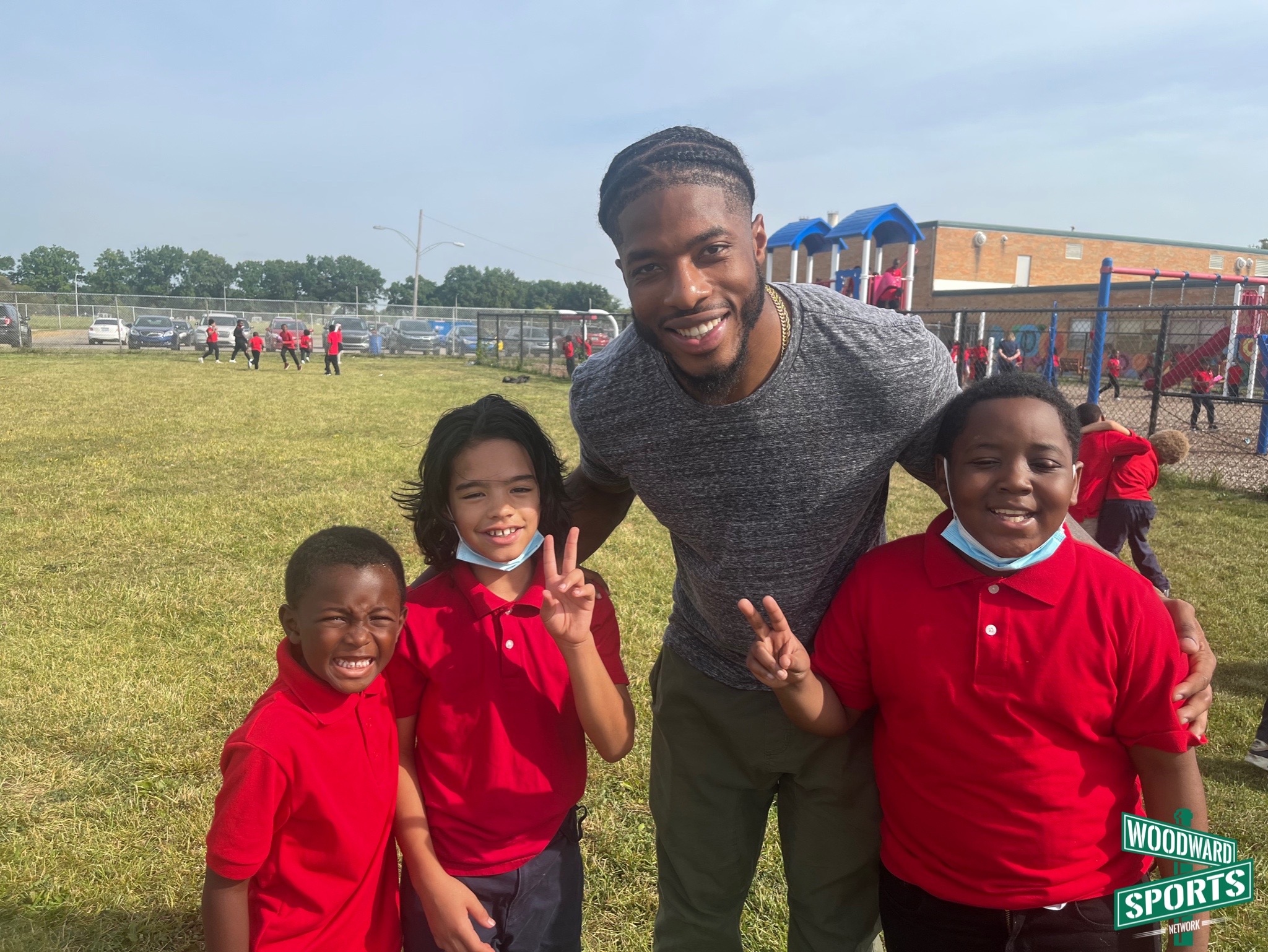 .@C_Board49 doing what he does best. Playing football with the kids at Dixon Educational Learning Academy during recess. 🏈 #Lions @A4C_ATHLETES pic.twitter.com/XJxfcfyZdj